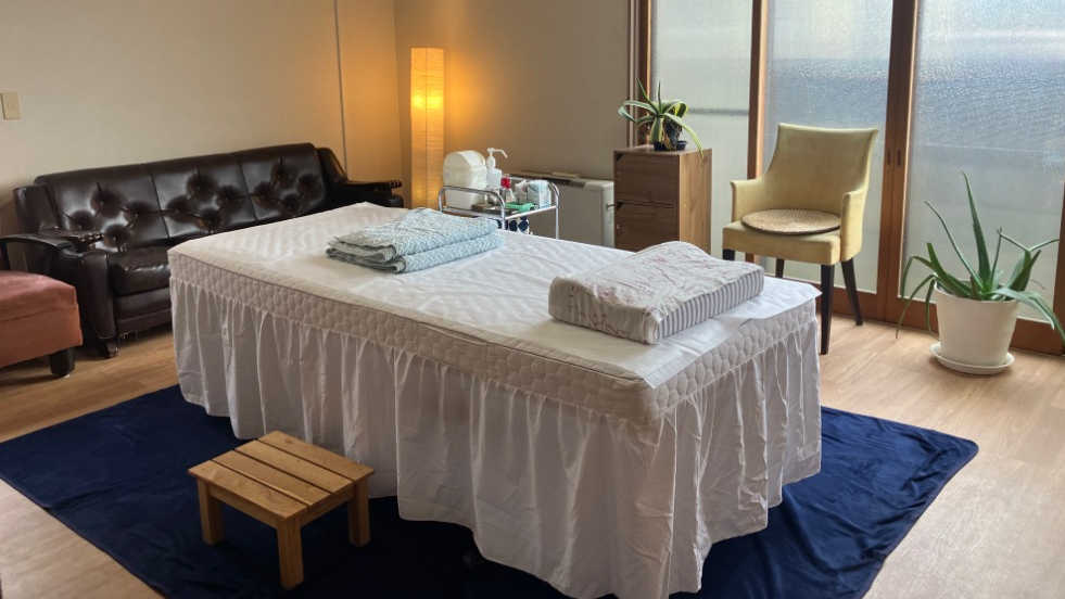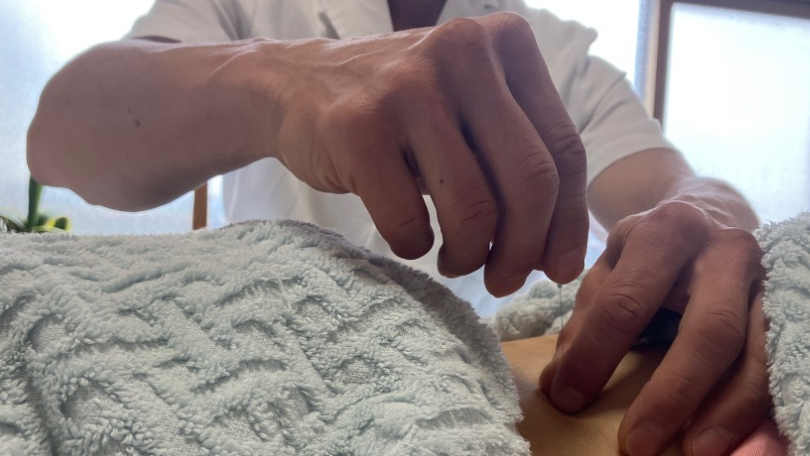 施術前に患者さんのお悩みをヒアリングします。お腹や背中、脈などの具合を確認し、マッサージ方針を立てます。こころとからだ全体を観る東洋医学の視点でツボや経絡ラインを意識します。また筋肉や筋膜、骨、血流やリンパなどの西洋医学の視点を融合させます。国家資格者の治療重視の本格マッサージです。マッサージの後にはお灸で究極リラックスです。